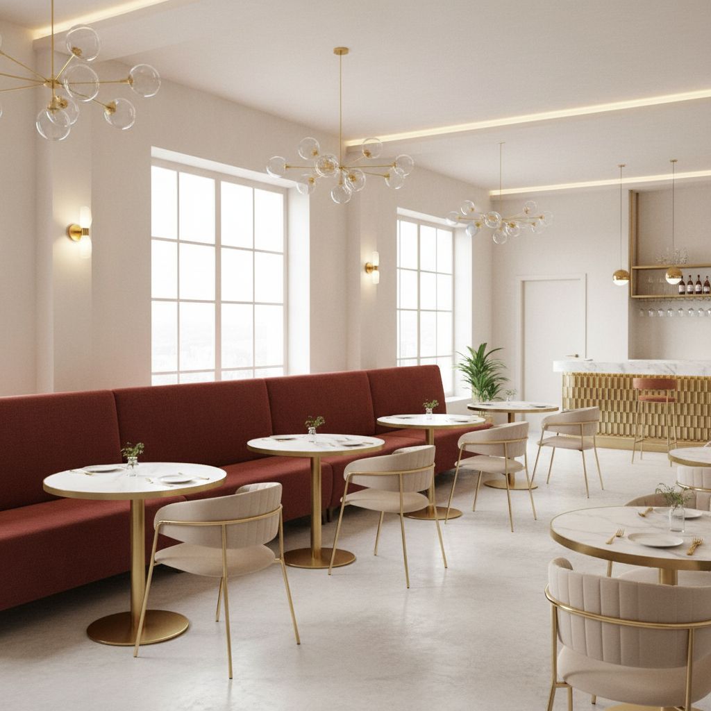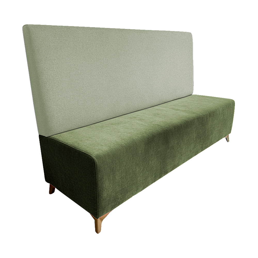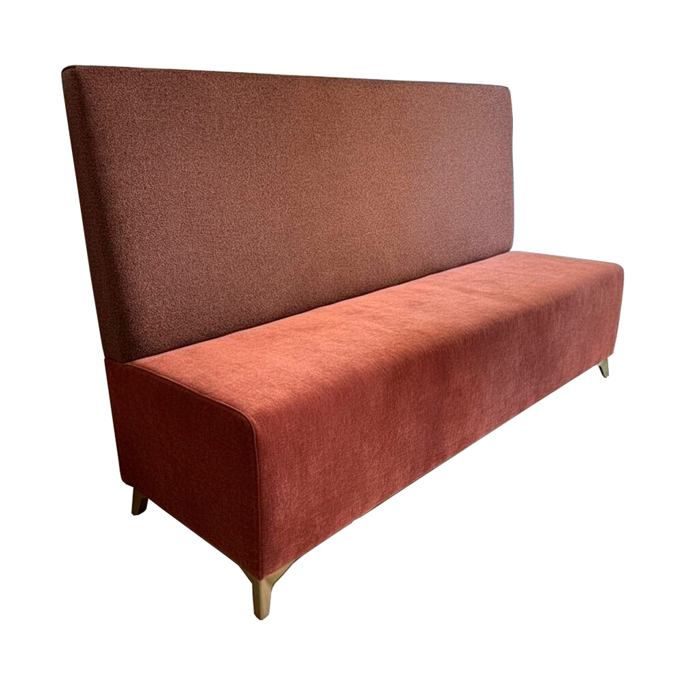 El banco corrido con respaldo BLADE Liso es un asiento modular fabricado a medida con estructura de madera y tapizado en varios acabados. Ideal para restaurantes, bares y cafeterías.