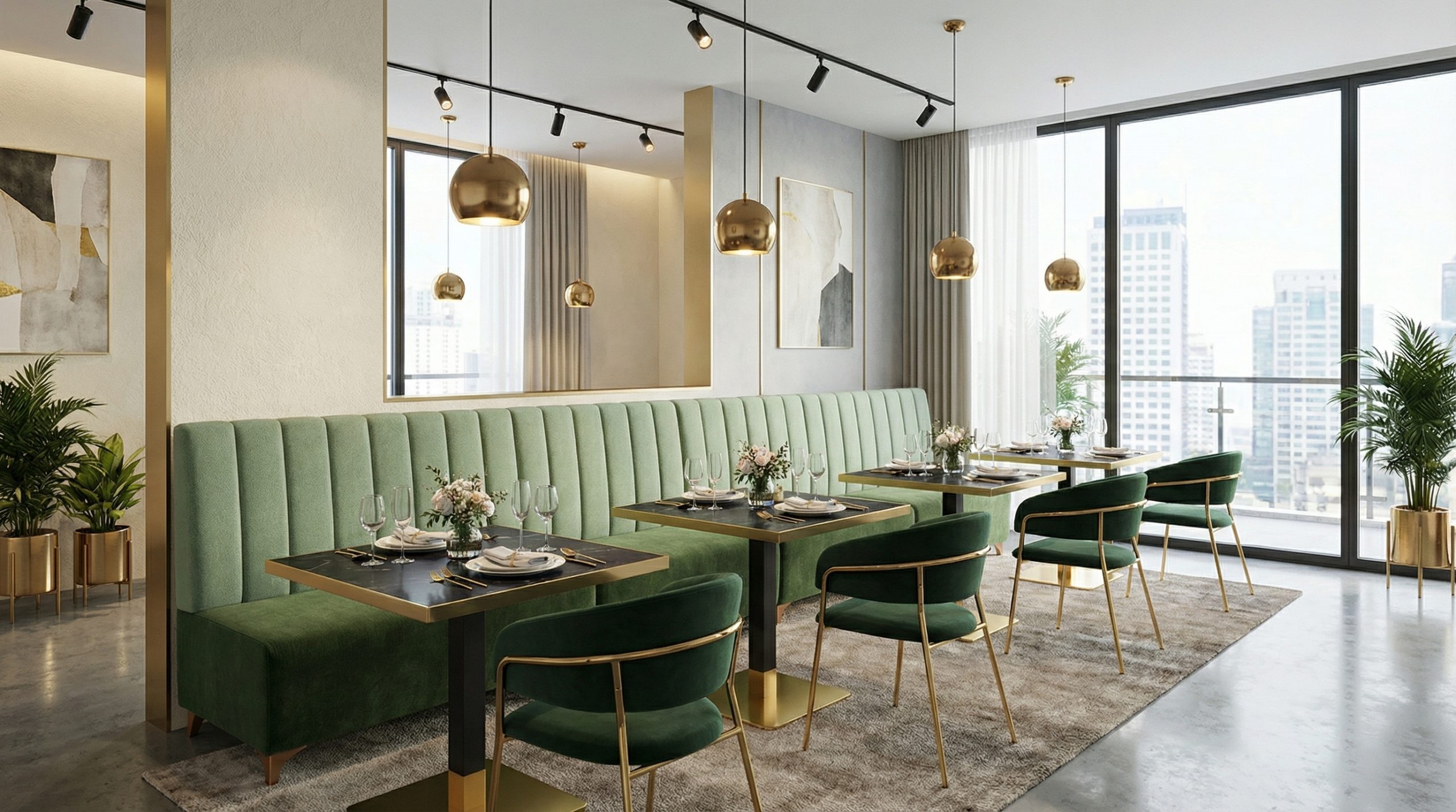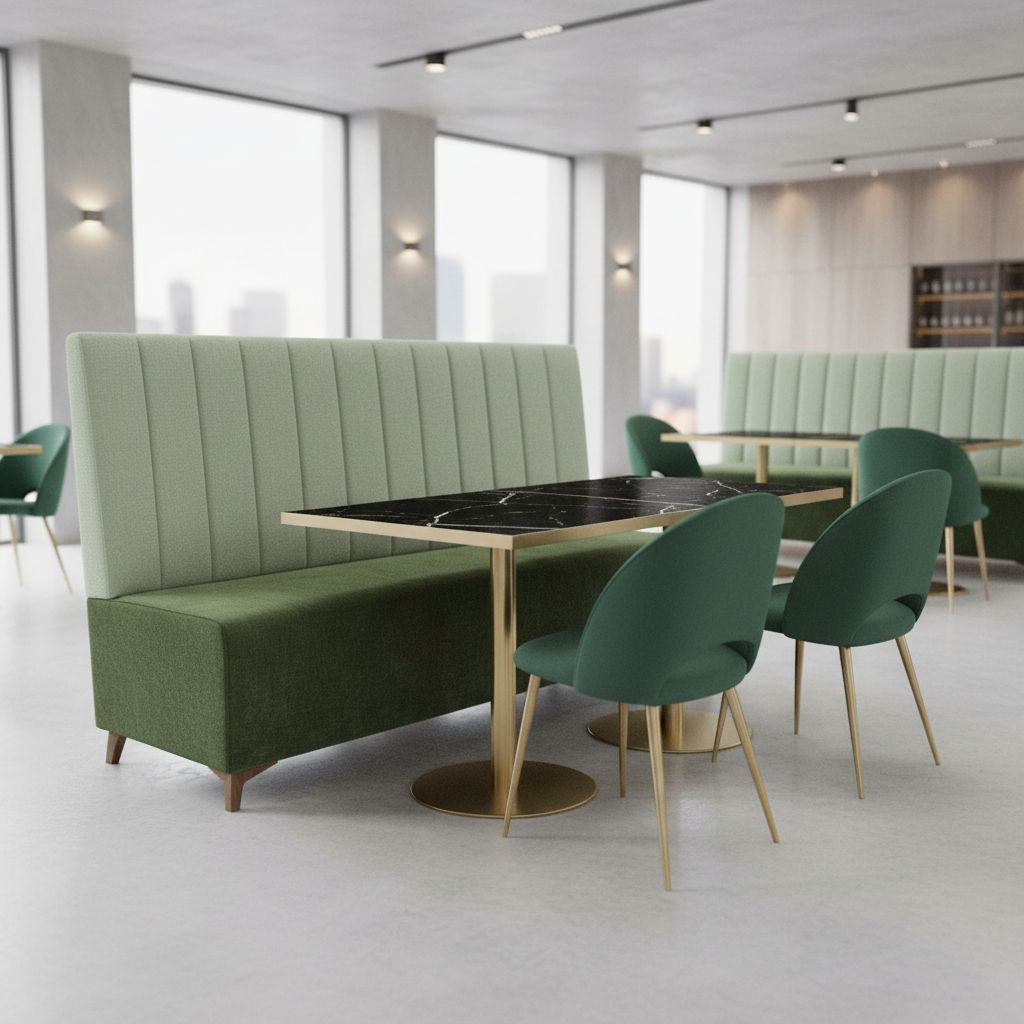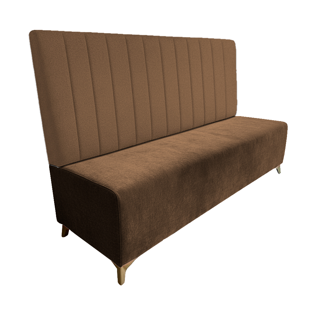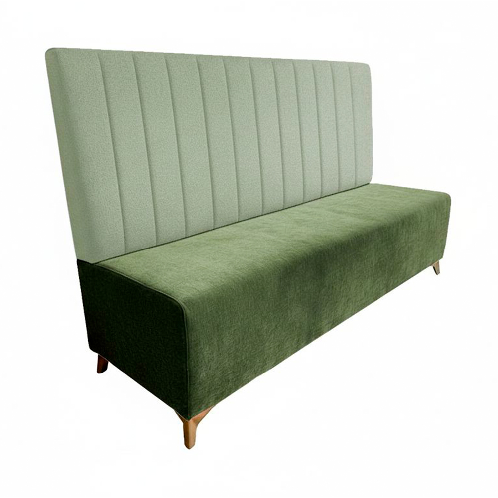 El banco corrido con respaldo BLADE Rayas es un asiento modular fabricado a medida con estructura de madera y tapizado en varios acabados. Ideal para restaurantes, bares y cafeterías.