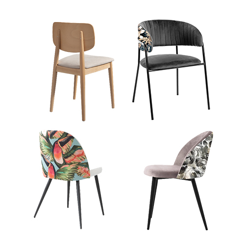 Las sillas de interior pueden tapizarse por separado cada parte combinando diferentes tejidos hasta crear la silla idónea que más se adapte a su local.